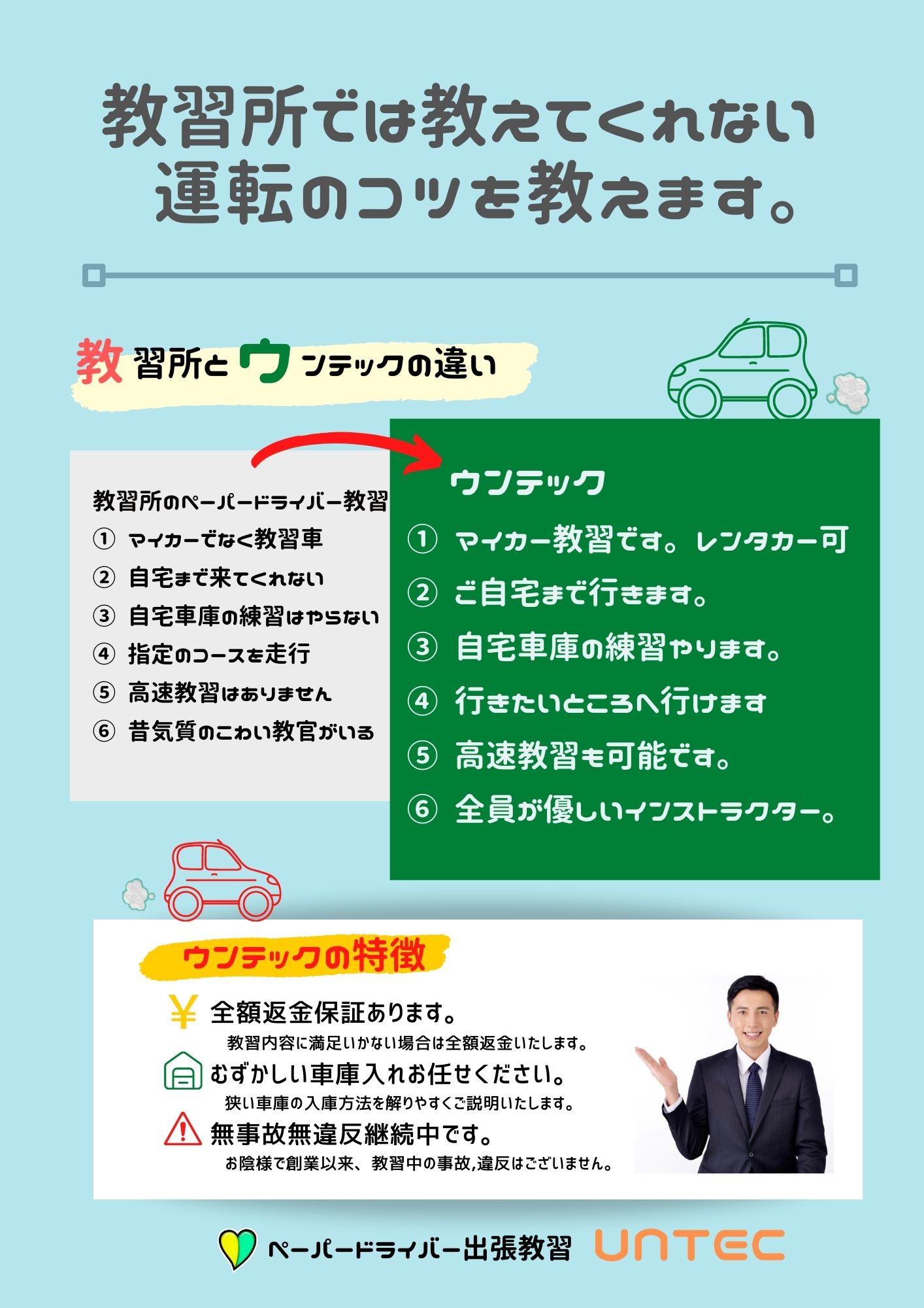 車両操作:アクセル、ブレーキ、ハンドル操作など、基本的な車両操作。